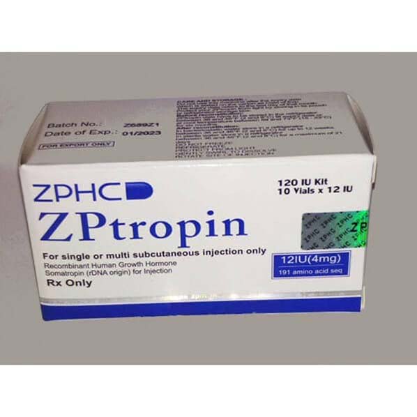Composition: Each vial of HGH ZPHC Zptropin contains 10 IU (international units) of somatropin (recombinant human growth hormone) in lyophilized powder form.